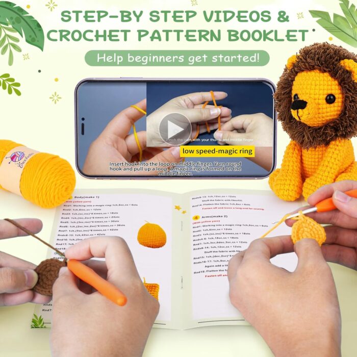 Be the first to review “Crochet Kit for Beginners, Crochet Starter Kit with Step-by-Step Video Tutorials, Crochet Animal Kits for Adults Kids, DIY Craft Supplies (Lion)”