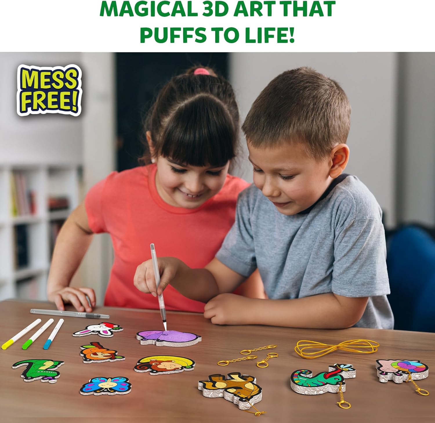 MAGICAL 3D ART THAT PUFFS TO LIFE!: Color in cute animals, then just add water and watch your creations magically puff up! Once dry, loop some string or a keychain through the hole and use them as room decor or awesome accessories!