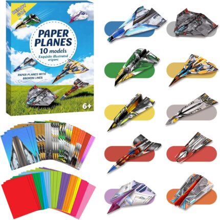 60 Sheets Paper Airplane Kit, Art and Crafts for Kids with Paper Airplane Instructions Book & Video, Stocking Stuffers for Boys Girls, Birthday Easter Kids Activities Crafts Gifts