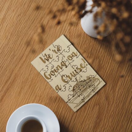 We’re Going On A Cruise – 15 Piece Basswood Jigsaw Puzzle, 6″ x 3.5″ Surprise Vacation Reveal